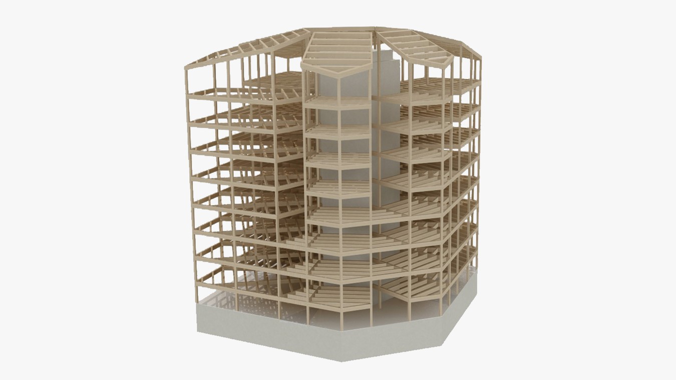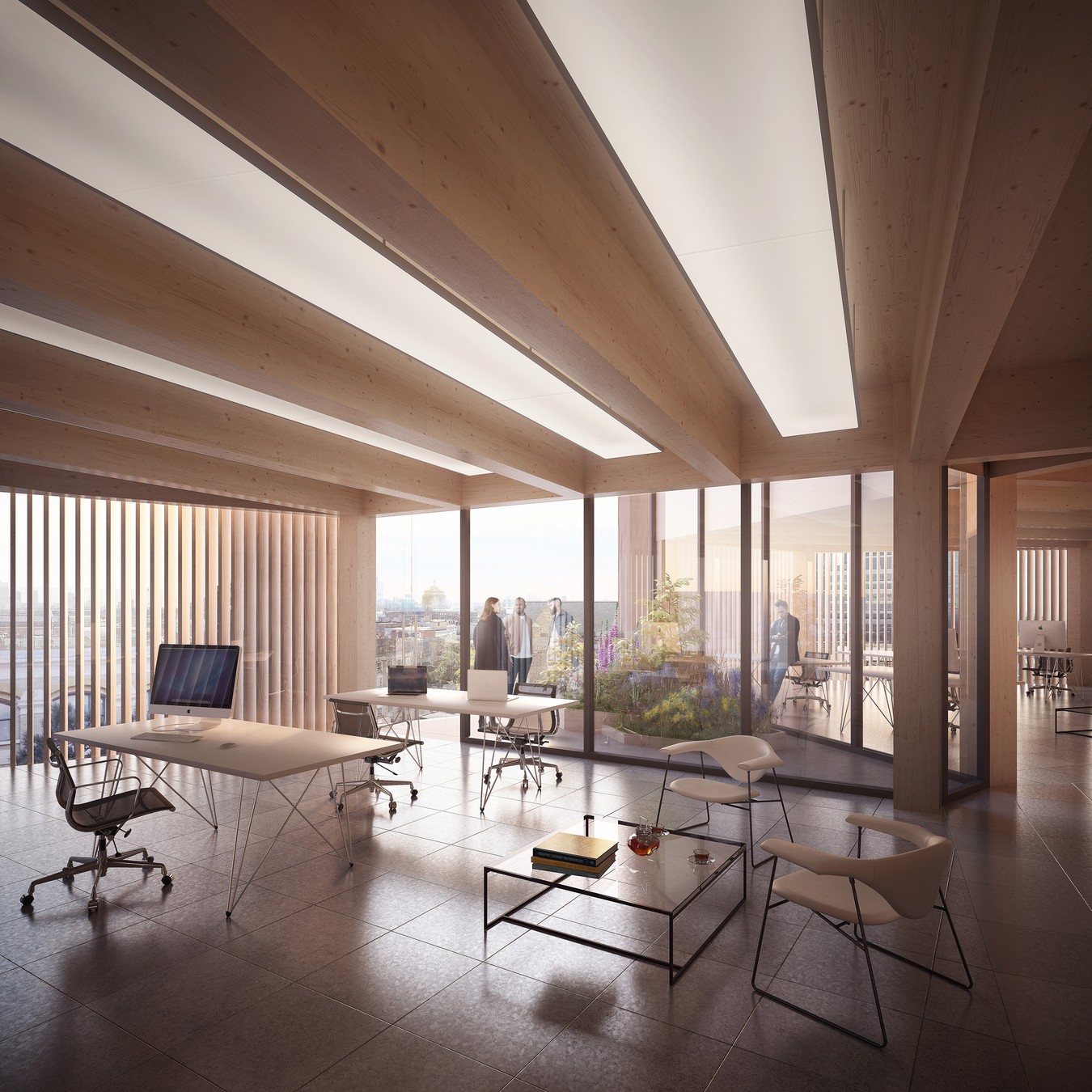 This nine-storey timber-framed office block will be the tallest engineered timber building in London, and a beacon building for Shoreditch.